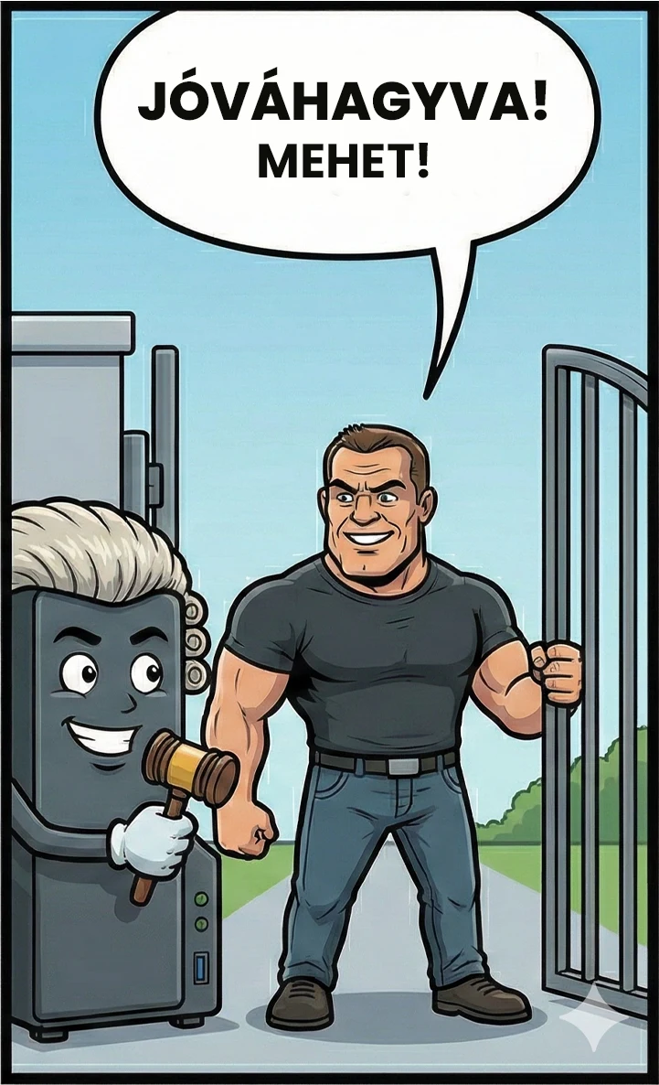 Amikor a kamerát csatlakoztatjuk, egy gyors "párbeszéd" zajlik le. A kamera felmutatja az igazolványát a switchnek. A switch, mivel nem tud olvasni, tovább küldi azt a NAS-nak. A NAS ellenőrzi a "Bírói listán", és ha minden rendben, visszaszól a switchnek: "MEHET!". Csak ekkor nyílik ki a kapu.