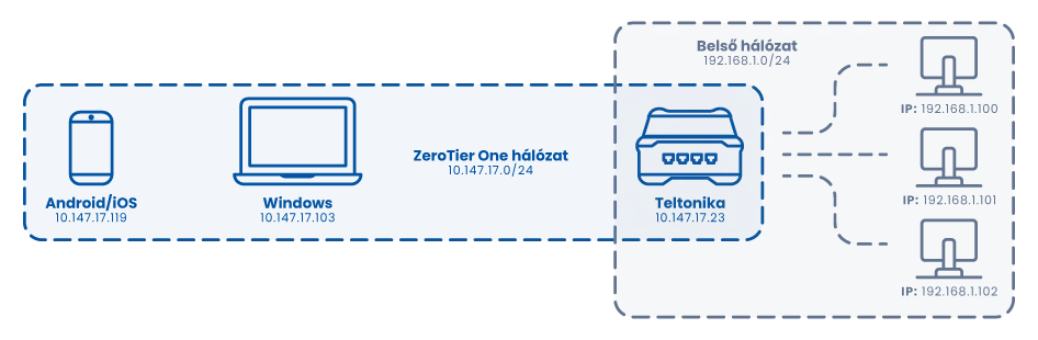 A Teltonika RutOS-alapú routerekre (RUT/RUTX sorozat) elérhető a ZeroTier csomag amivel a routered maga lesz a belépési pont a kamerák hálózatára. Ez különösen hasznos Techson CCTV eszközöknél: a kamerák maradnak a helyi hálózaton, a távoli hozzáférés pedig a ZeroTier virtuális IP-jén keresztül történik, port nyitások nélkül!