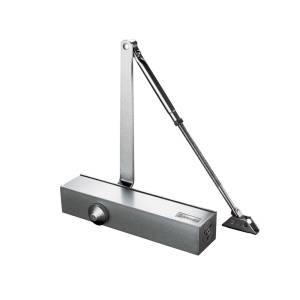 Dorrenhaus univerzális karos ajtóbehúzó standard karral. EN3-6 állítható erő, 950-1500 mm ajtószélességig és 60-150kg ajtósúlyig, 180°nyitási szög, két, külön tartományban állítható zárási sebesség (180-15°között és 15-0°között). Back Check funkció (nyitó irányú fék a kicsapódás ellen). Kültérre is használható, balos és jobbos ajtókhoz is. Alumínium ház, 265x61x46mm méret. Furattávolság: 50-50x45mm. Ezüst színben.