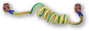 0,5 méter hosszú, sárga-zöld színű földelő kábel, amelyet elosztószekrények és elektromos berendezések biztonságos földelésére használnak, biztosítva a fémrészek megbízható összekötését a védőfölddel, ezáltal növelve az üzembiztonságot és az érintésvédelem hatékonyságát.
